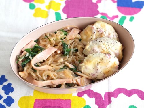 白滝を使って糖質オフのお弁当。せっかくなので桜の下でお花見しながら食べました。