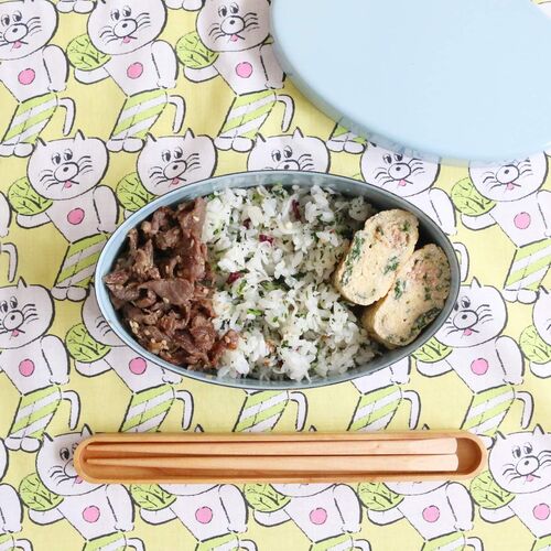 焼かない焼き肉「カルビチム」をシリコンスチーマーで作りました。お弁当は、おかず2品のふたしな弁当です。