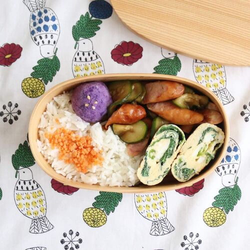 一気にお弁当上級者に見えちゃう、曲げわっぱのお弁当箱。特に小判型の曲げわっぱはサイズもちょうどよくて、使いやすいです。