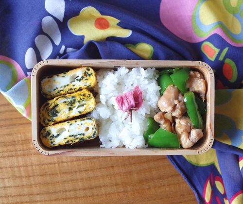 お花見に行けないので、桜花の塩漬けをお弁当に詰めて、春らしいお弁当を作りました。