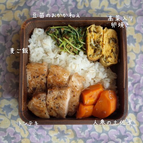 週末に仕込んでおいた下味冷凍の豚肉を使ってお弁当を作りました。