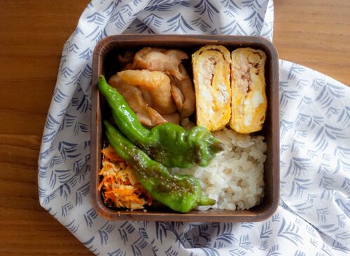会社で立派な甘長をいただいたので、お弁当に活用しました。