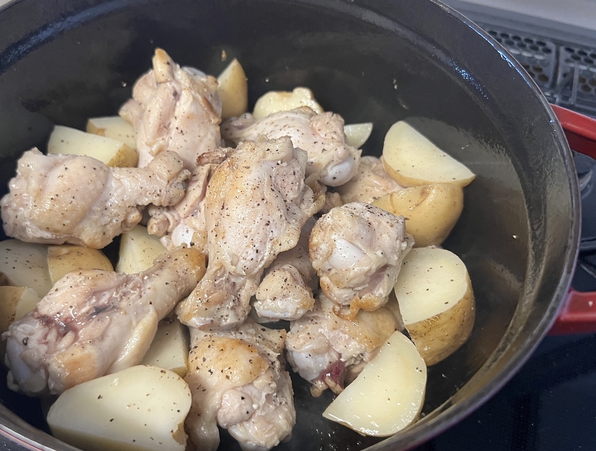 - ストウブで煮たじゃがいもはホクホクで、鶏肉はホロホロ。無水鍋すごい!
