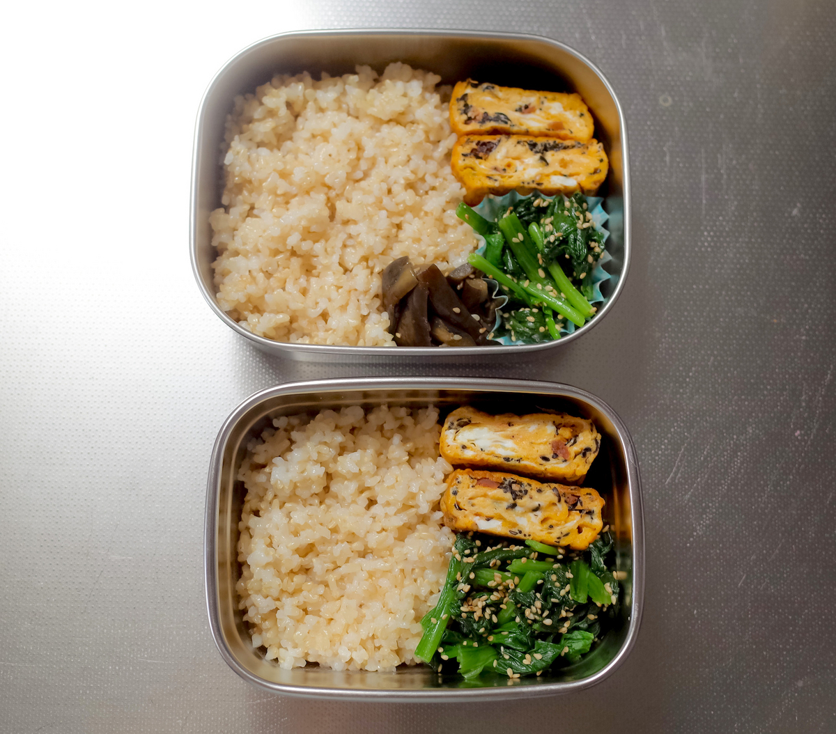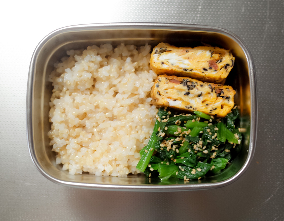 卵焼きの隣には玄米ごはんを。