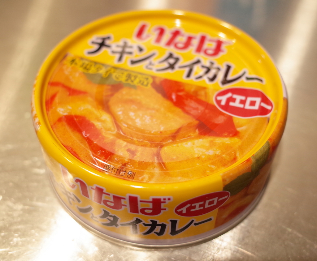 いなばのカレー缶、種類豊富なんですが、今回は「チキンとタイカレー」のイエローを使いました。