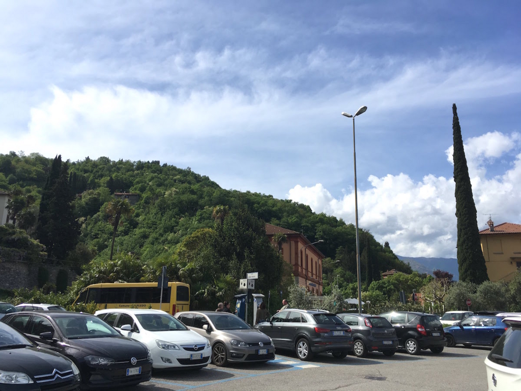 イタリア到着翌日は、友人の車に乗ってヴァレンナの駅に向かいました。駅前の駐車場に車を止めて、湖の方まで歩きます。