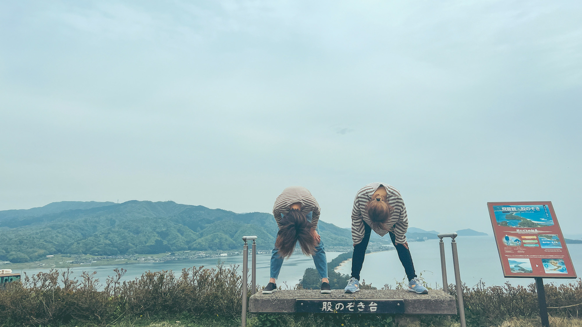 天橋立といえば、股のぞき。友達と一緒に、ちゃんとやっておきました。