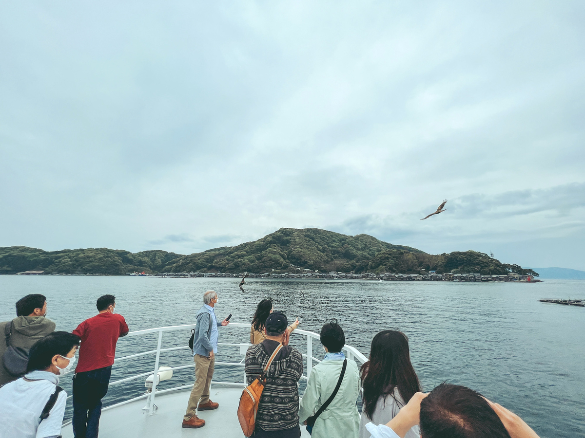 伊根湾をめぐる遊覧船があったので、せっかくなので乗船。うみねこやトンビが至近距離で見られて、なかなか迫力がありました。
