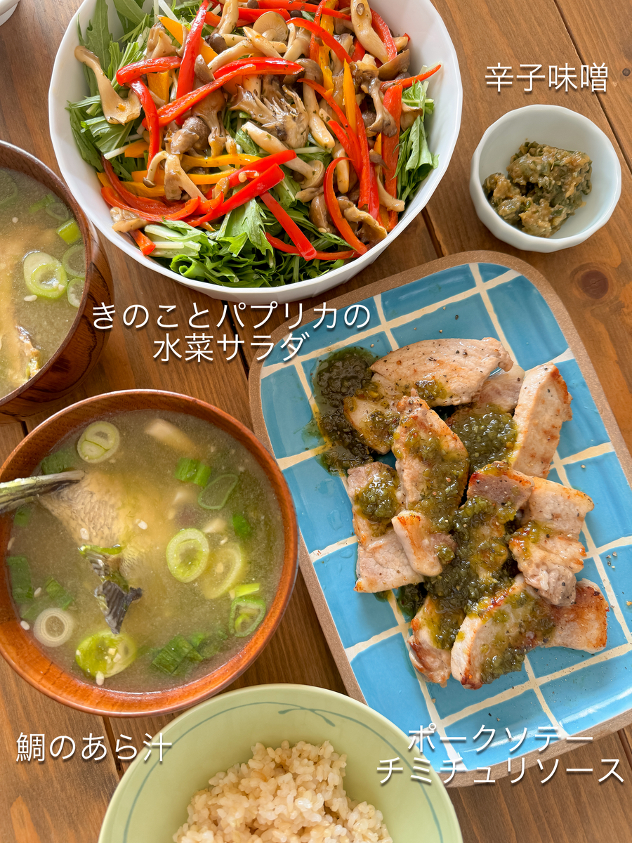 - 副菜:きのことパプリカの水菜サラダ