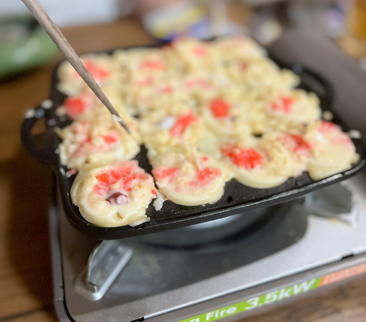 道具も含めて、その子にお任せしておけば美味しいたこ焼きが食べられたので、あまり人生でたこ焼きを作ってこなかったんですが、今回は横浜開催ということもあり、たこ焼き奉行はいません。