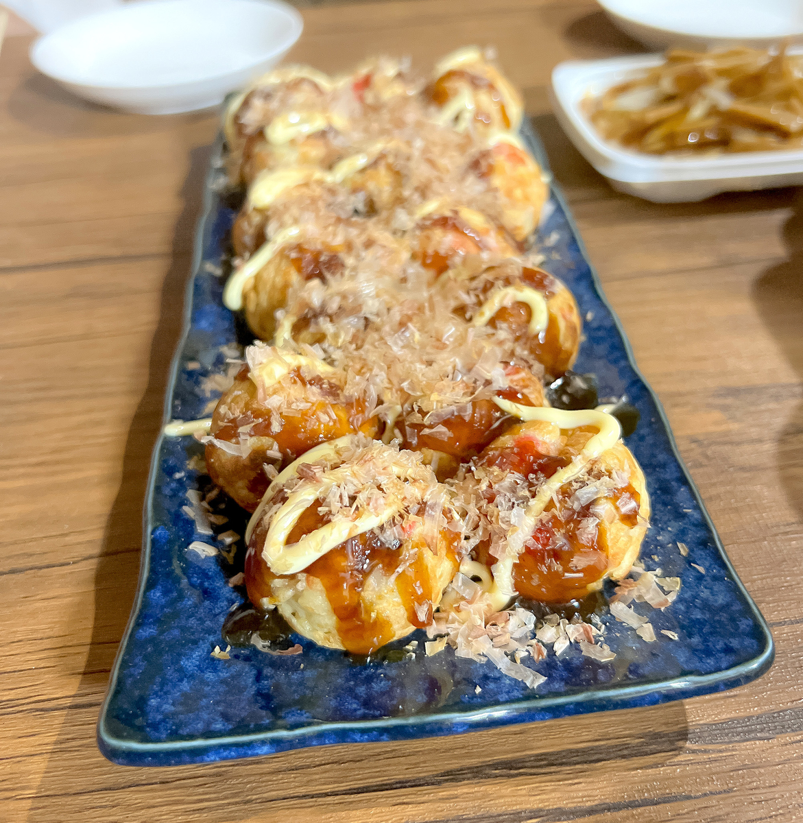 慣れないたこ焼き作りでしたが、出来上がってみるといい感じ。テーブルの上で食べつつ、飲みつつ、焼きつつ、食べつつのサイクルが良かったです。